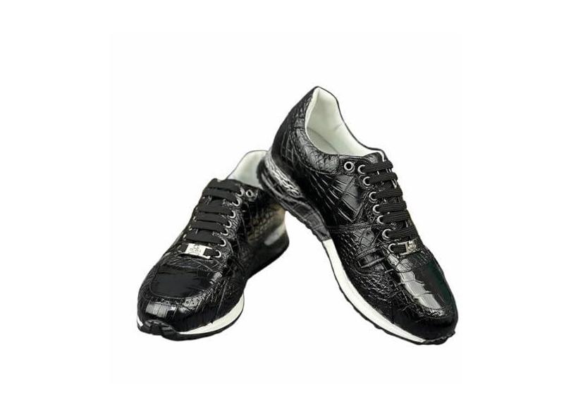 Tênis masculino autêntico exótico pele de crocodilo tênis genuíno couro jacaré genuíno masculino macio cadarço sapatos de caminhada, Preto, 41