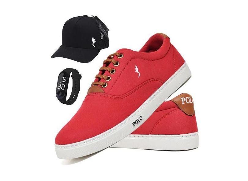 O menor preço encontrado no Brasil para Tênis Masculino Casual Conforto + Boné + Relógio Kit 3 - Polo Blu, 39, atualmente é R$ 120,31.