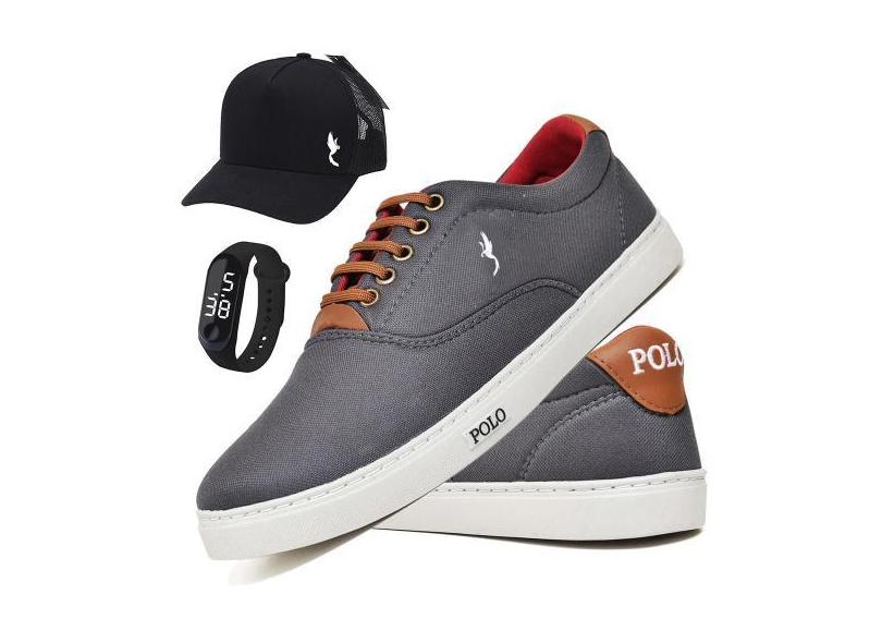 Tênis Masculino Casual Conforto + Boné + Relógio Kit 3 - Polo Blu, 43,