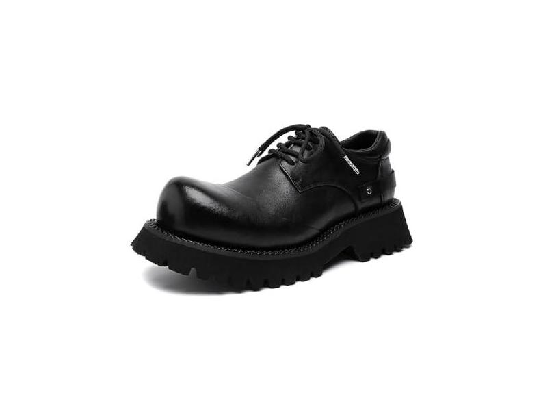 Tênis masculino casual de sola grossa com cadarço e cano baixo para trabalho, Preto, 39