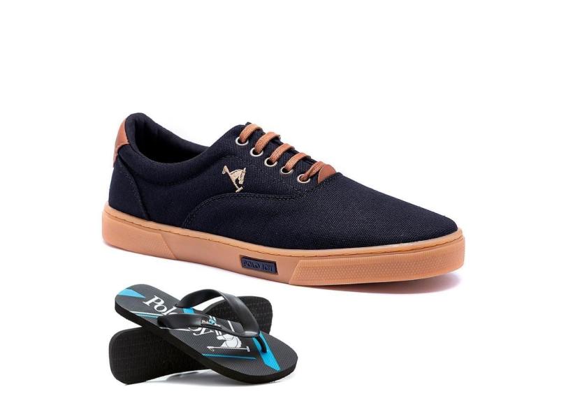 Tênis Masculino Casual Em Lona Polo Joy Reto + Chinelo