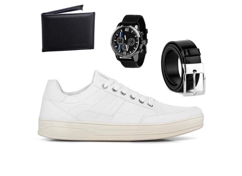 Tenis Masculino Casual Kit Sapato Relogio Carteira e Cinto Elegante