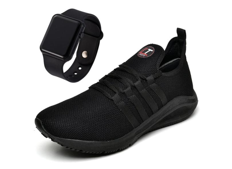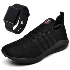 Tênis Masculino ConffortTop Preto + Relógio-Masculino