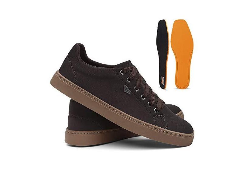 Tenis Masculino Confortável em lona têxtil LL0271 marrom Cor:Marrom;Tamanho:41;Genero:Masculino