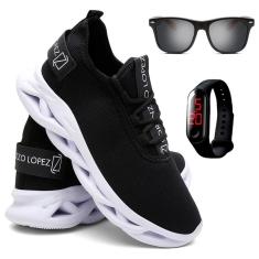 O menor preço encontrado no Brasil para Tênis Masculino Corrida e Caminhada Treino + Óculos de Sol e Relógio-Masculino atualmente é R$ 129,90.