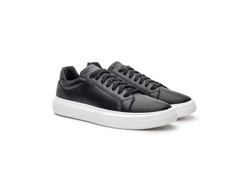 Tênis Masculino Couro Esportivo Super Macio Leve Urbano Preto - Burly