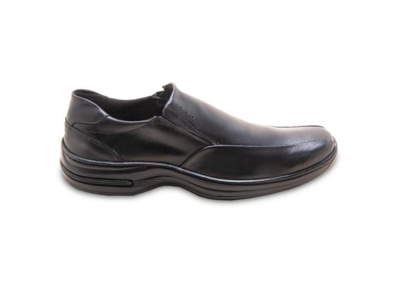 Tênis Masculino Couro Preto Resistente Calce Fácil Confortável Casual Trabalho Servente Pedreiro-Masculino