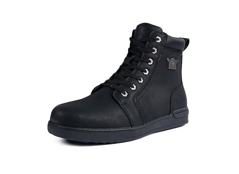 Tênis masculino de equitação de motocicleta, sapatos de equitação de rua, respiráveis, tênis para esportes motorizados, couro sintético preto com cadarço e suporte de tornozelo para homens, sola