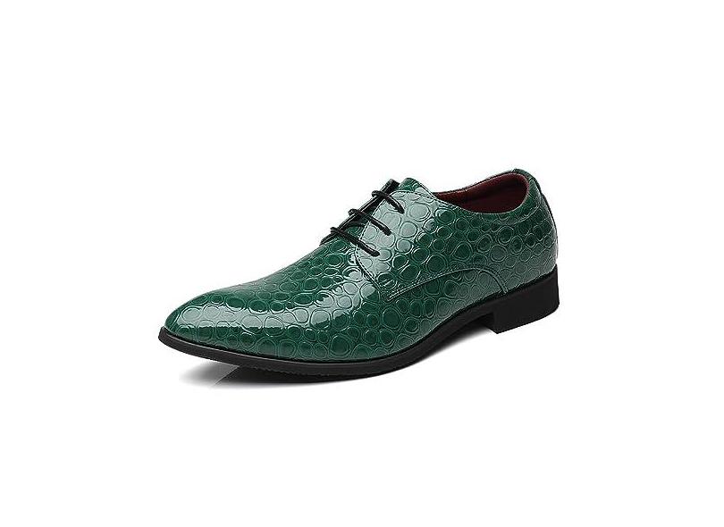 Tênis masculino de jantar formal britânico com estampa de cobra em couro envernizado, Verde, 41