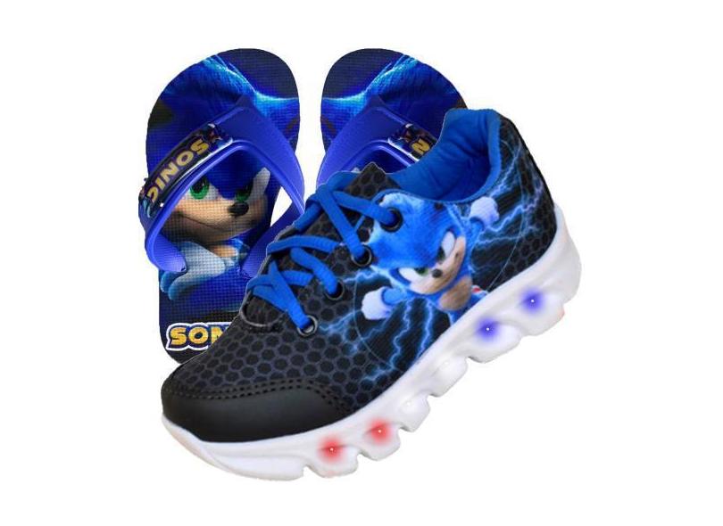 Tenis Masculino De Led Sonic Personagem Luzinha + Chinelo - Vick Kids,