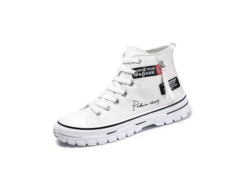 Tênis masculino de lona de cano alto, casual, caminhada, skate para homens, moderno, confortável, com sola macia, Branco, 39