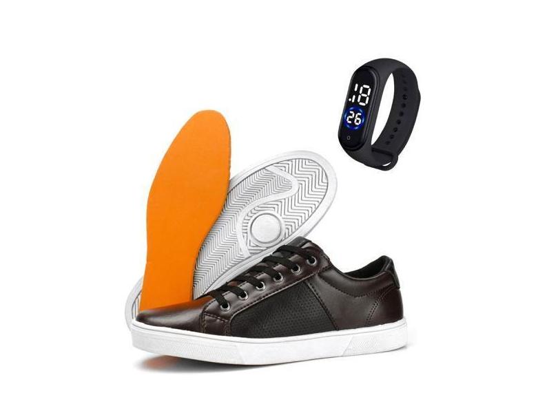 O menor preço encontrado no Brasil para Tenis Masculino Em Couro Confortável Sapatenis Casual + Relógio Digit atualmente é R$ 142,41.