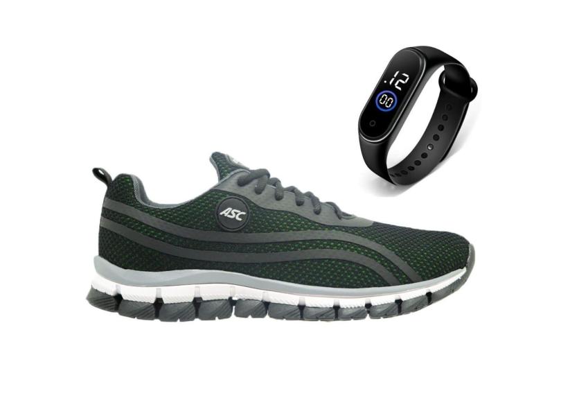 Tenis Masculino Esportivo Caminhada Leve Academia Conforto Dia a Dia + Relógio LG21-Masculino
