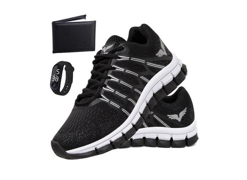 O menor preço encontrado no Brasil para Tenis Masculino Kit Carteira + Relogio Sapato Esportivo Veloz - GP, Pr atualmente é R$ 125,54.