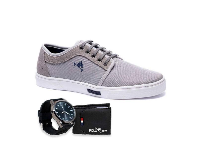 Tênis Masculino Polo Joy Casual Em Lona Amarração + Relógio