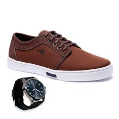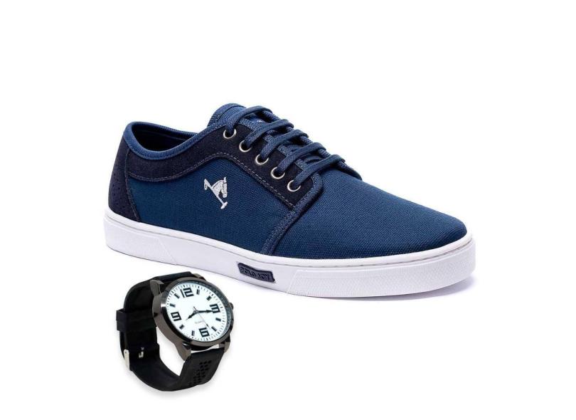 Tênis Masculino Polo Joy Casual Moderno Em Lona + Relógio