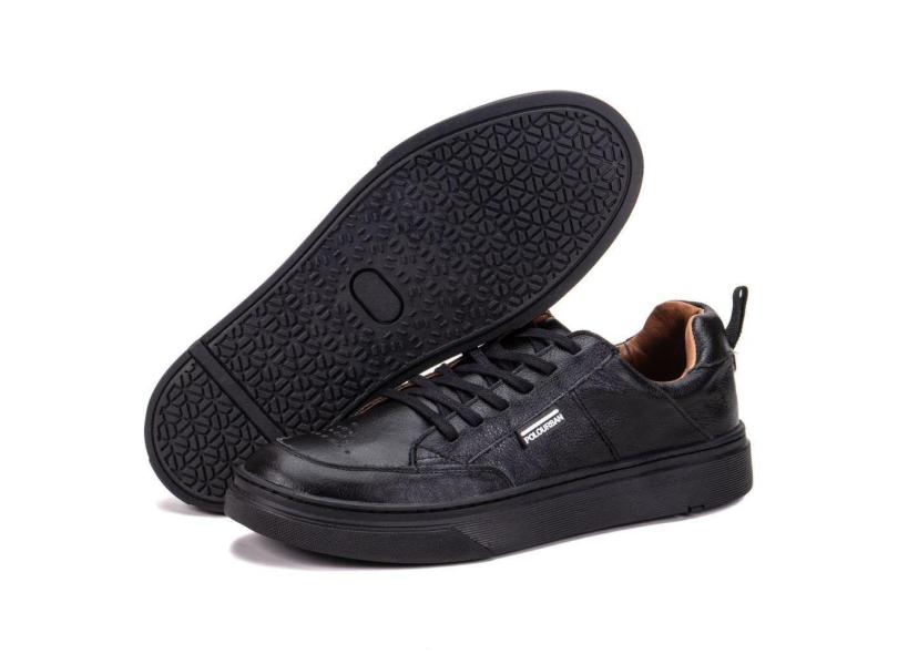 Tênis Masculino Preto Casual em Couro Cano Baixo Minimalista Elegante Low