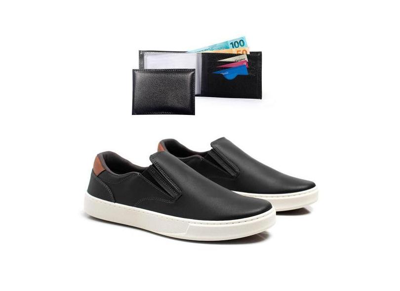 Tênis Masculino Slip On Cadarço Moderno + Carteira Kit 2 - Épico, 41,