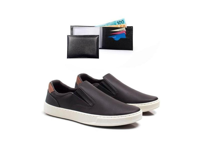Tênis Masculino Slip On Cadarço Moderno + Carteira Kit 2 - Épico, Marr