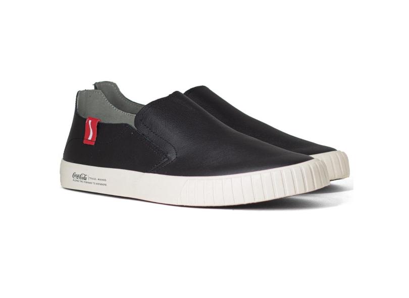 Tênis Masculino Slip On Coca Cola Casual Philadelphia Leather Couro Conforto 2417-Masculino