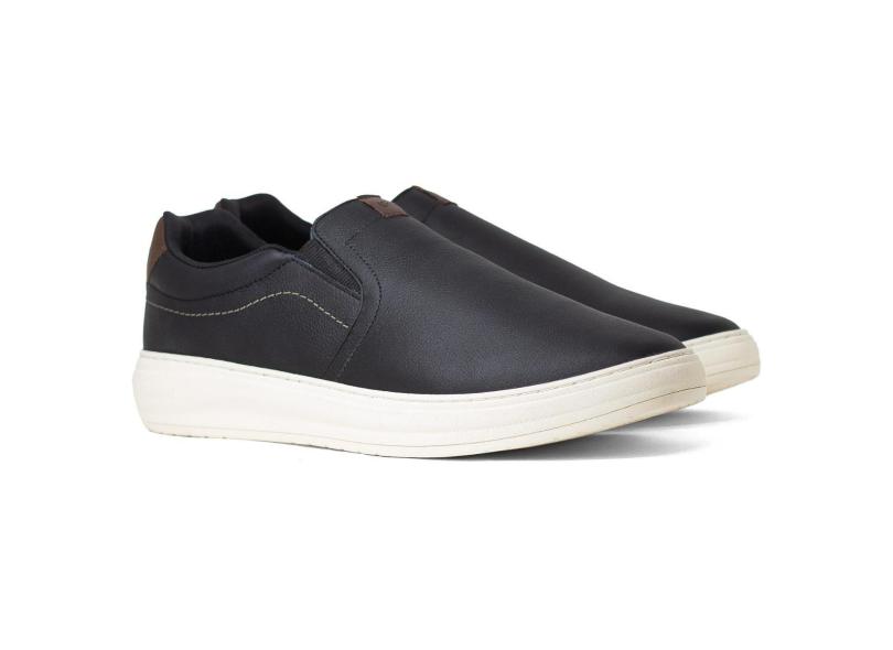 Tênis Masculino Slip On Freeway Casual Couro Night Legítimo Costurado Ultra Comfort DUO05-Masculino