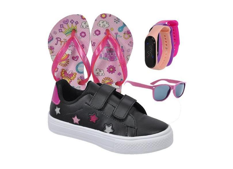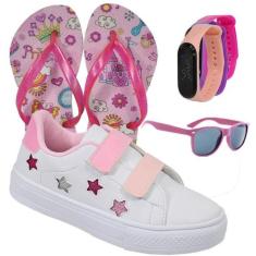 Tênis Menina Estrela Glitter Feminino Infantil + Chinelo + Óculos + Re