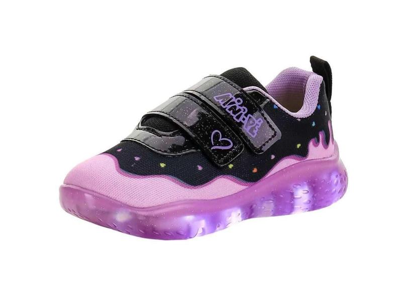 Tênis Menina Luzinha Led Sola Glitter Mini Pe MP2330 Preto/Lilás 27-Feminino