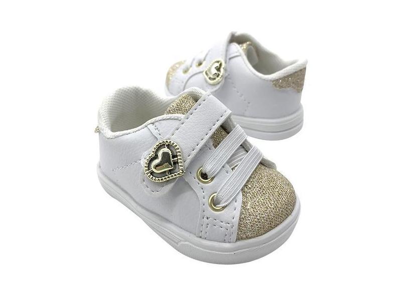 Tenis Menina Sapatinhos Bebe Calcados Infantil Branco Com Dourado Glit