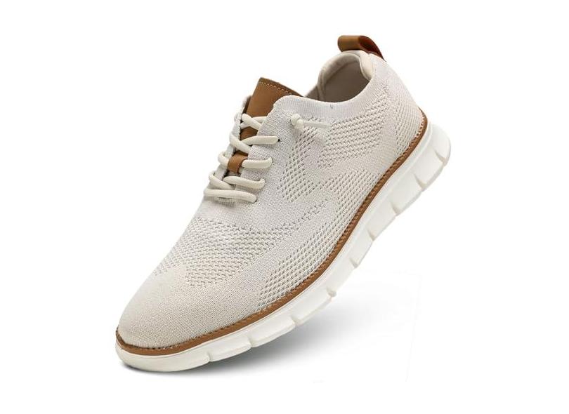 Tênis Oxford masculino de negócios, moderno, de malha, casual, para caminhada, confortável, leve, sola macia, Bege, 41