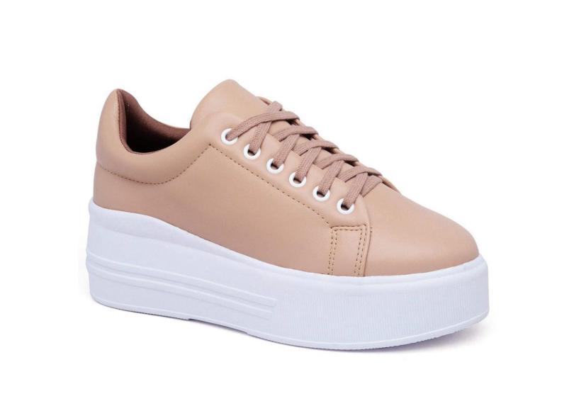 Tênis Plataforma Feminino Liso Cadarço Dia a Dia Conforto Nude 34 Nude feminino