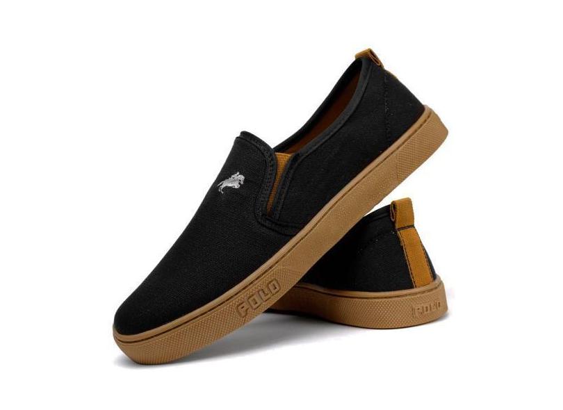 Tênis Polo White Casual Masculino Preto com Elástico - Casualstock, Pr