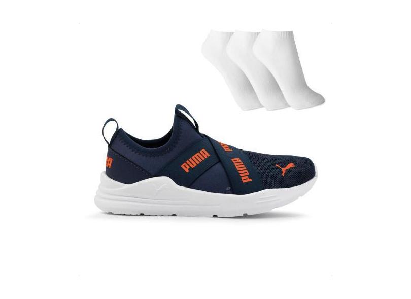 Tênis Puma Wired Run Slip On Infantil + 3 Pares De Meias