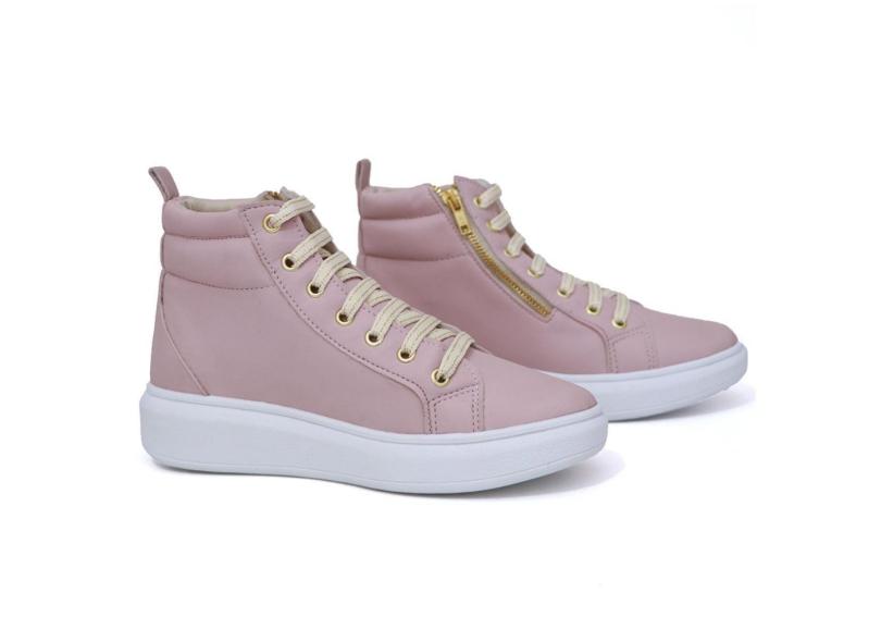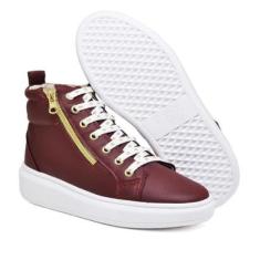 Tenis Sapatenis Cano Alto Feminino Ziper Lateral Botinha Casual Confortavel Macia Moderno-Feminino