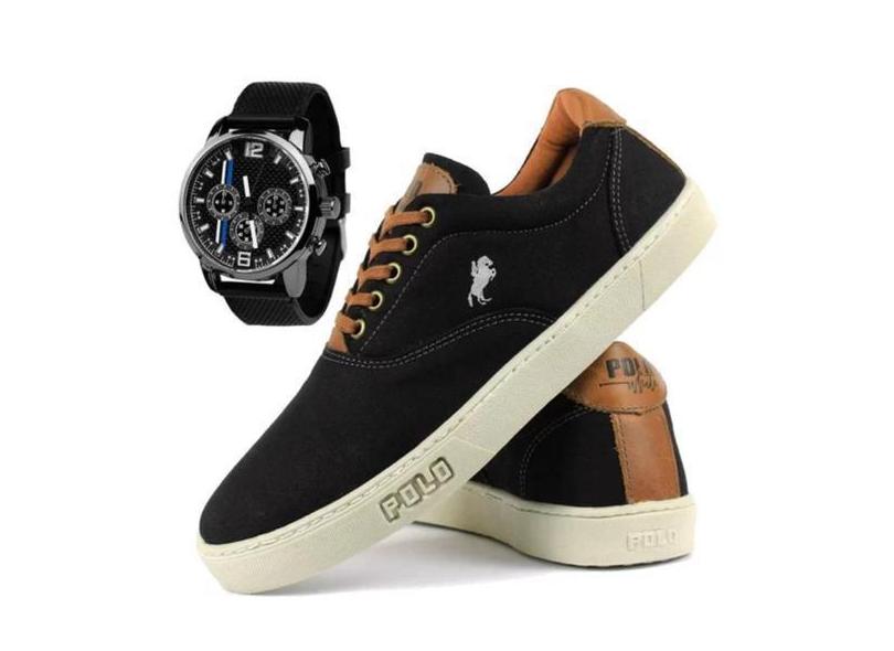 Tênis Sapatênis Polo White Hiate Masculino Preto + Relógio Top - Casua