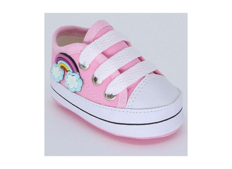 Tênis Sapatinho De Bebe RN Menina com Emborrachado - Nenê Baby, 18, Ro