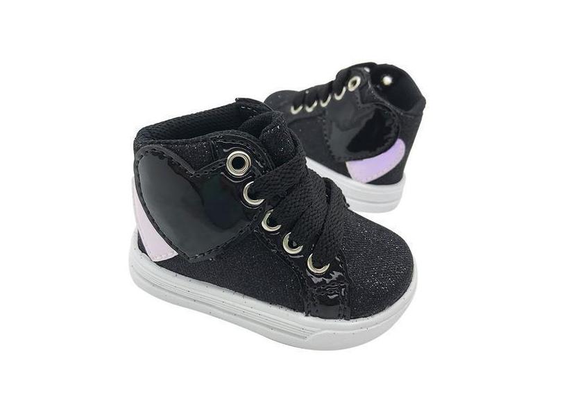 Tênis Sapatinho Para Bebês Infantil Cano Alto Love Glitter Preto, 19