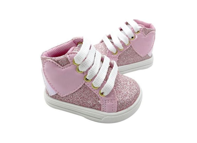 Tênis Sapatinho Para Bebês Infantil Cano Alto Love Glitter Rosa, 20