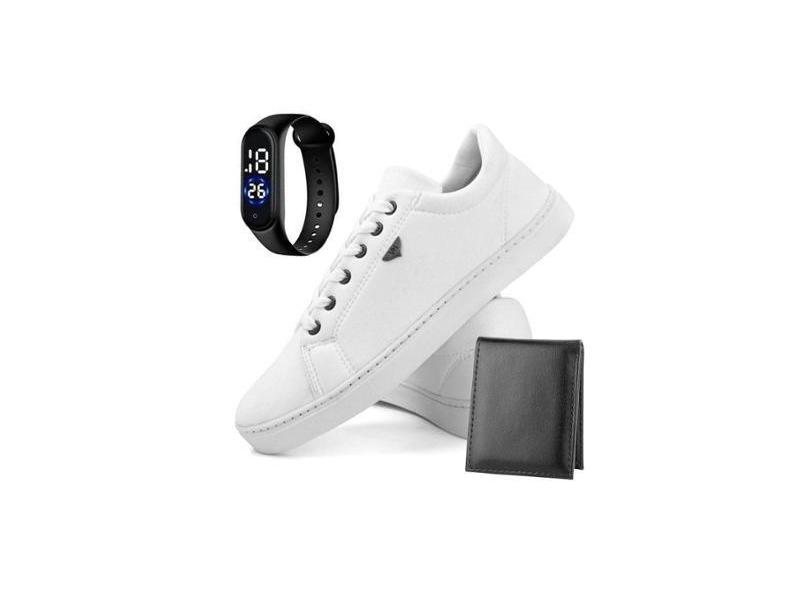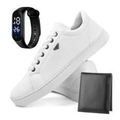 O menor preço encontrado no Brasil para Tênis Skatista Masculino Street Lifestyle Moderno Estiloso Dia a Dia + Relógio e Carteira-Masculino atualmente é R$ 76,90.