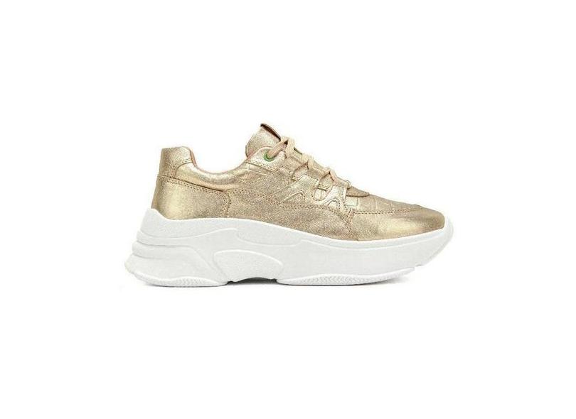 Tenis Skeaker Feminino Casual Sola 5,5cm Dourado Couro Legitimo - Rot