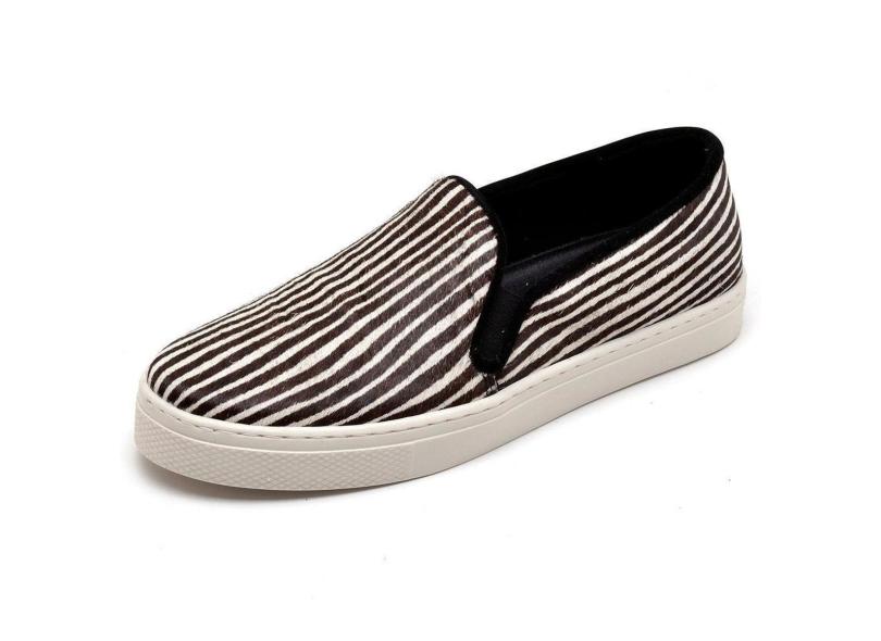 Tenis Slip Iate Feminino Couro Estampa de Zebra Casual Conforto Calce Facil Forrado Super Macio-Feminino