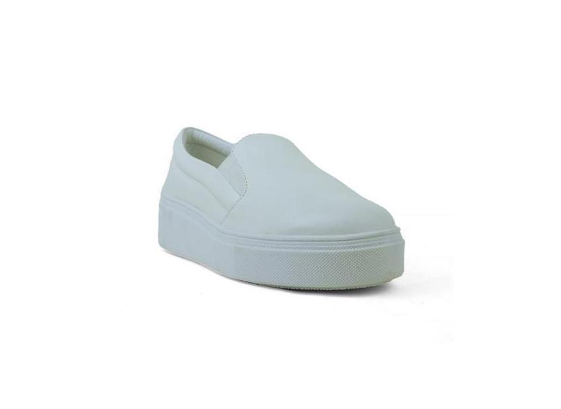 Tênis slip on couro feminino solado plano alto - DONA TUNICA, Branco,