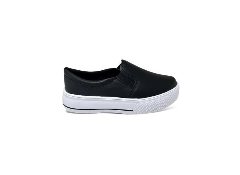 O menor preço encontrado no Brasil para Tênis Slip On Feminino Preto Liso Flatform Detalhe Listra-Feminino atualmente é R$ 99,97.