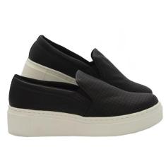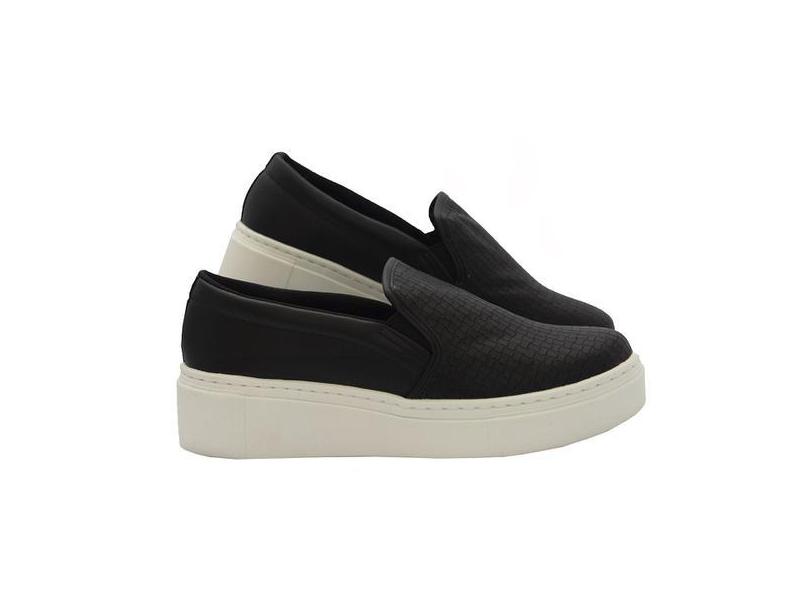 Tênis Slip On Feminino Preto Tressê Solado Branco - Salook