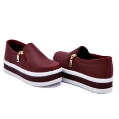 Tênis Slip On Liso Com Zíper Lateral Amanda Block Solado Alto Em Borra