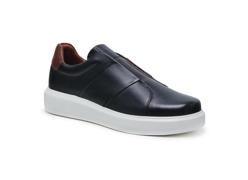 Tênis Slip On Masculino Malbork em Couro Preto e Sola em Borracha 5504-Masculino