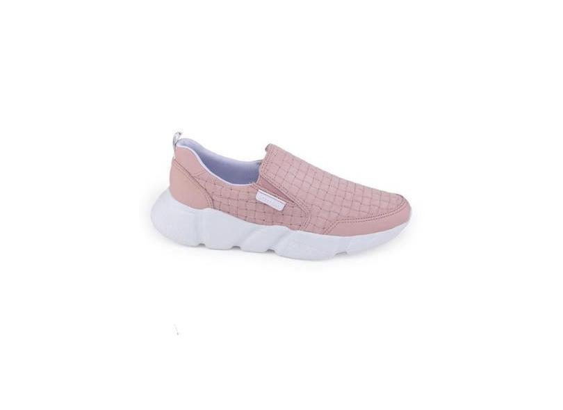 Tênis SlipOn Casual Bottero 341701 Couro Camurça Tresse Rosa-Feminino