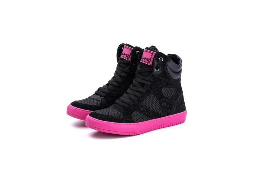 Tenis Sneaker Botinha Couro Cano Alto Unissex Fitness Preto e Rosa - B
