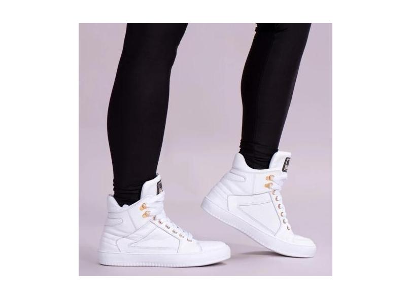 Tênis Sneaker Feminino Cano Alto Academia Couro Legítimo 50130 - BM, B