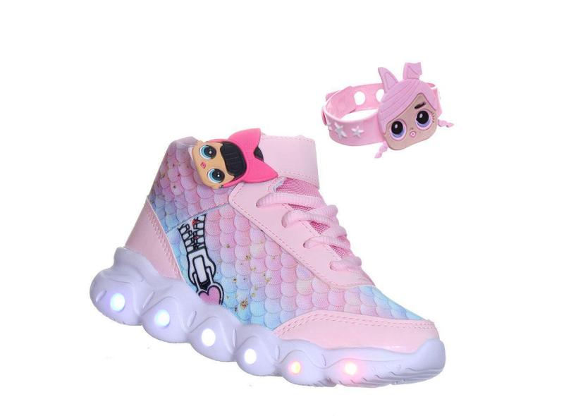 Tenis Sneakers Infantil Menina Boneca Com Luzinha Led Vem Pulseira de Criança