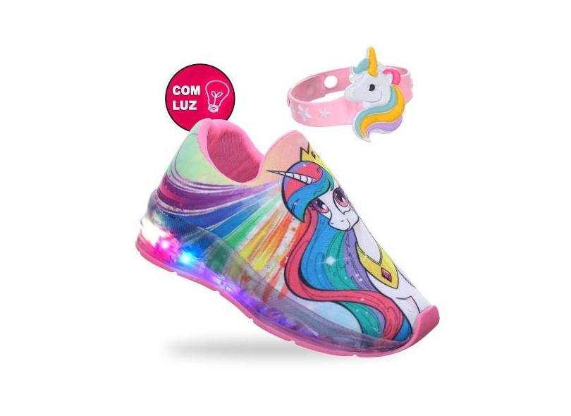 Tenis Unicórnio Infantil Menina Led Luzes Automáticas Pisou Piscou - P